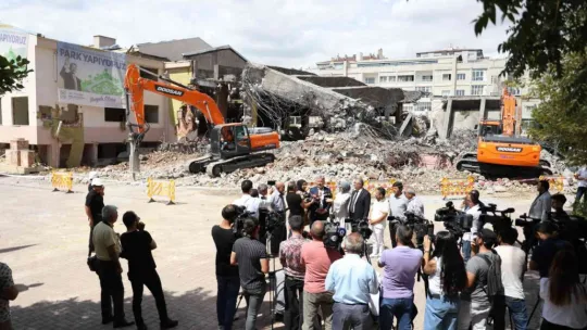 Melikgazi’de en önemli dönüm noktalarından bir tanesini yaşadıklarını ifade eden Başkan Dr. Mustafa Palancıoğlu, “Uzun süredir çalışma yapıyorduk ama bunların içerisinde şehir merkezinde Hunat’ta benim de mezun olduğum Dedeman’ın eskimiş betonarme bloğunun yıkımı başladı. Şehir merkezini rahatlatacak yeşil alan ve otopark ihtiyacını karşılayacak büyük bir projenin de başlangıcını yapmış olduk Ben öncelikle bir önceki bakanımız Ziya Selçuk Bey’e teşekkür ediyorum. Onun onayıyla burası park ve yeşil alan oldu. Dolayısıyla buradaki yıkımdan sonra Kayseri’ye güzel bir park yapacağız. İnşallah yıkımdan sonra hızlı bir şekilde Kayseri’ye güzel bir parkı kazandıracağız. Şehrin merkezinde yaklaşık 7000 metrekare alanı yeşil alana çeviriyoruz. Bunun karşılığında da Dedeman Okulumuzu Hulusi Akar Bulvarı üzerinde Kayseri’nin en lüks ve en büyük okulunu yaparak taşımış olduk. Belediye olarak da her türlü desteği oraya sağlayacağız. Özellikle Mehmet Özhaseki Bakanıma vermiş olduğu destekten dolayı teşekkür ediyorum. Yıkım çalışmalarımızda Gökmen Çiçek Valimizin çok büyük desteği oldu. Emeği geçen herkese teşekkür ederim. Yaklaşık bir ay içerisinde betonarme binayı yıkılarak şehir merkezine nefes aldıracağımız güzel bir yeşil alanlı çalışmaları başlatacağız" dedi.