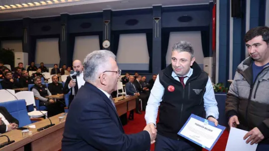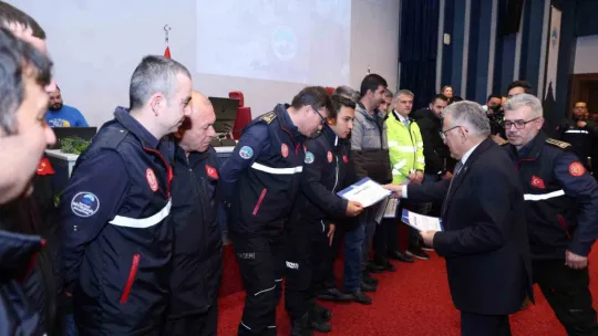 Konuşmaların ardından, gerek arama, kurtarma gerekse yardım faaliyetlerinde üstün başarı ve gayret gösteren Kayseri Büyükşehir Belediyesi daire başkanlıkları ekiplerine teşekkür belgesi ve plaketi takdim edildi.