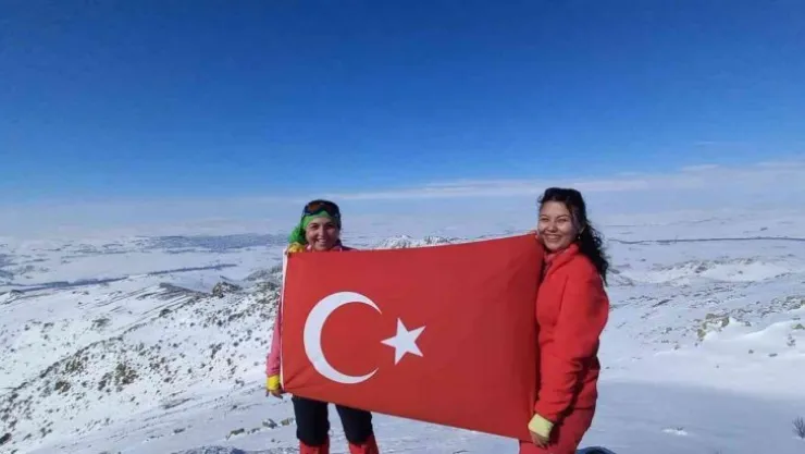 Bin 677 metre yüksekliğindeki Baranlı Dağı tırmanışı ise soğuk havaya rağmen gerçekleştiren Aydın, ekibi ile birlikte dağın zirvesinde Türk Bayrağı açarak poz verdi.