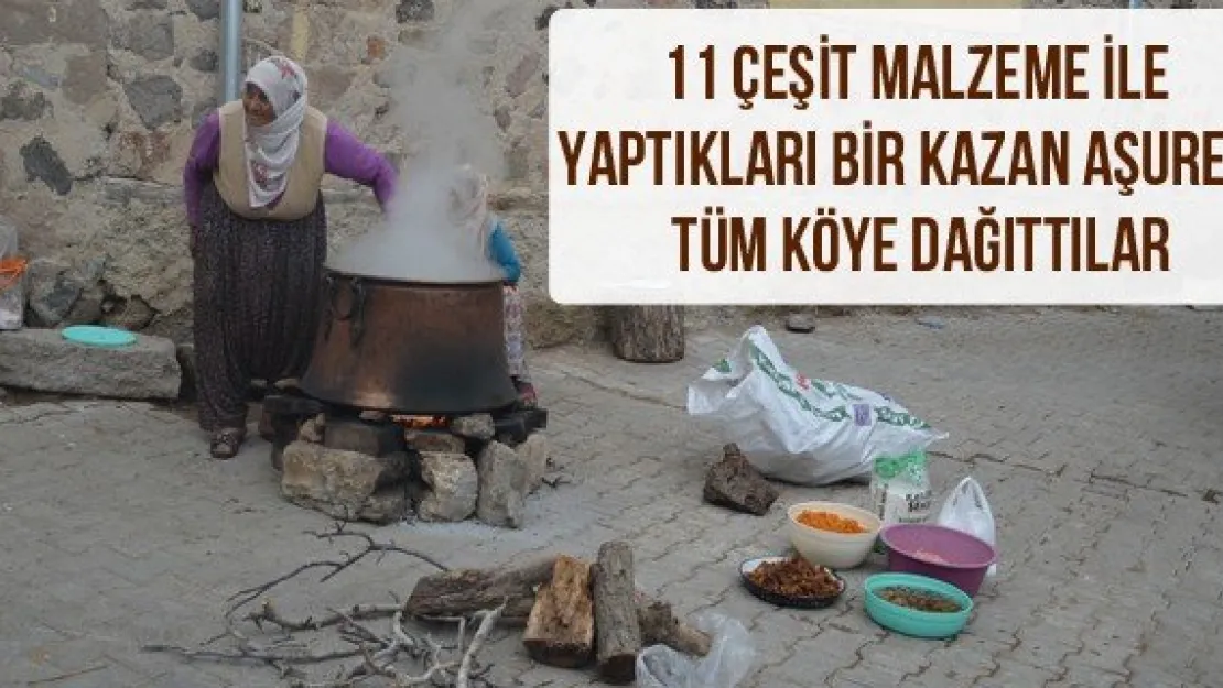 11 çeşit malzeme ile yaptıkları bir kazan aşureyi tüm köye dağıttılar