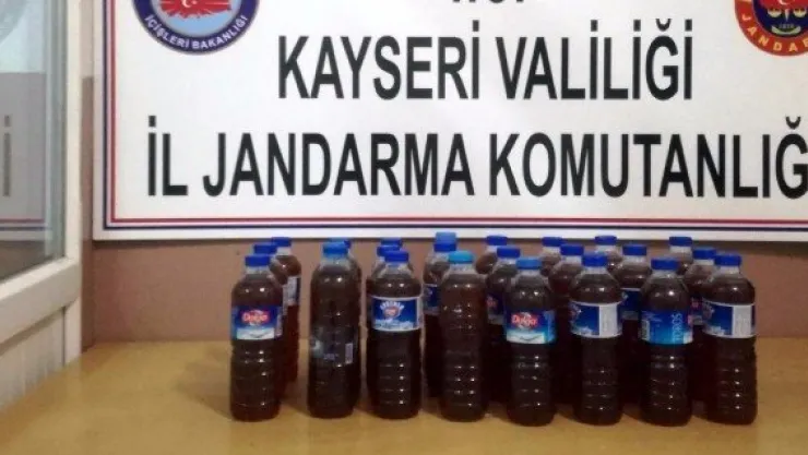 Kayseri İl Jandarma Komutanlığınca yapılan çalışmalarda 24 adet keçiboynuzundan yapılan sahte boğma rakı ele geçirildi.