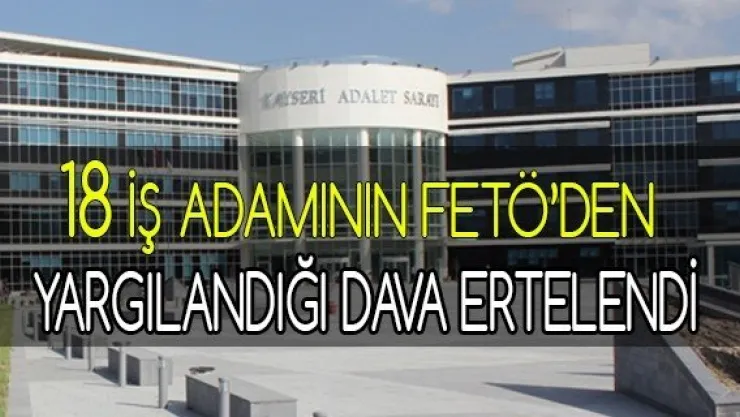 Kayseri’de FETÖ/PDY soruşturması kapsamında açılan davada yargılanan, aralarında tanıdık işadamlarının olduğu 3’ü tutuklu 18 sanığın yargılandığı dava ertelendi.