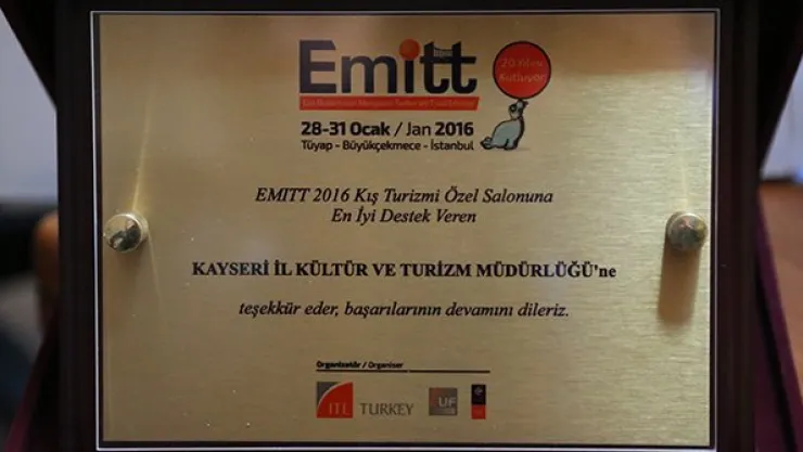 Kayseri’yi cazibe merkezi yapma yolunda ilimizin en önemli değeri olan Erciyes’in ağırlıklı olarak yer aldığı Kayseri standı 'EMITT 2016 Kış Turizmi Özel Salonuna En iyi Destek Veren' ödülüne layık görüldü.