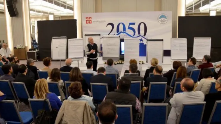 Abdullah Gül Üniversitesi (AGÜ) ile Kayseri Büyükşehir Belediyesi tarafından ortaklaşa düzenlenen '2050 Yılında Kayseri' konulu Arama Konferansında, Kayseri'nin stratejik yol haritası belirleniyor. AGÜ Rektörü Sabuncuoğlu konferansta gelecekte hayal edilen Kayseri'yi, Kayseri'nin geleceğini tasarlamakta olduklarını söyledi.