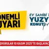 Çevre, Şehircilik ve İklim Değişikliği Bakanlığı, 500 Bin Sosyal Konut Projesi'nin başvurularının 10 Kasım 2025 tarihinde başlayacağını duyurdu.