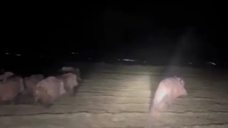 Kayseri'nin Yeşilhisar ilçesinde aç kalan domuz sürüsü yerleşim alanına indi. Bir vatandaş tarafından görüntülenen domuzların, ekili alanlara zarar verdiği ifade edildi.