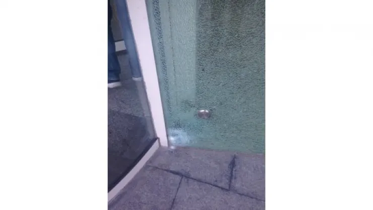 Kayseri Adalet Sarayı önünde iki grup arasında çıkan kavga sırasında, bir kişi yanında bulunan silahla Adliye binasının camını kırdı.
