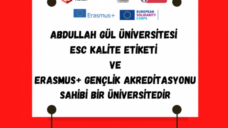 Abdullah Gül Üniversitesi’nin (AGÜ) gençlere yönelik faaliyetler yürüten ’Gençlik Fabrikası’ birimi Avrupa Dayanışma Programı tarafından verilen ’Gençlik Programı Gönüllülük Faaliyeti Kalite Sertifikası (ESC50)’ kapsamında 3 ayrı sertifika almaya hak kazandı.