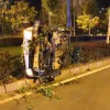 Alkollü sürücünün kullandığı araç yan yattı
