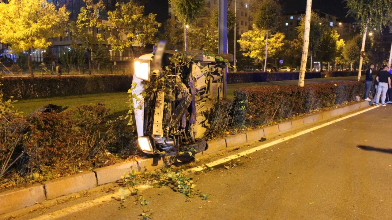 Melikgazi İlçesinde sürücüsünün alkollü olduğu belirlenen hafif ticari araç tramvay hattına girerek yan yattı.