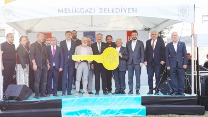 'Burada güzel bir hizmeti paylaşıyoruz, anahtarlar teslim ediliyor, yapmış olduğu çalışmalar ile gönüllerde yer eden bir anlayış. Melikgazi'mizin kıymetli Başkanını ve onun kıymetli, tecrübeli, samimi, gayretli ekibini kutluyorum, iyi ki varsınız. Evleriniz hayırlı, uğurlu olsun. Kuralar da gönlümüze göre çıksın diyeceğim; ama zaten evlerin hepsi güzel, birinci sınıf konutlar.'