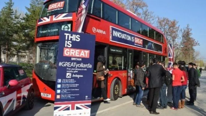 Abdullah Gül Üniversitesine gelen çift katlı Londra otobüsü öğrenciler ile buluştu. Öğrencilere eğitim İngilizce seminerleri verilerek çift katlı Londra otobüsü anlatıldı. Yapılan seminerin ardından öğrenciler otobüs önüne kurulan stantta bilgiler aldı.