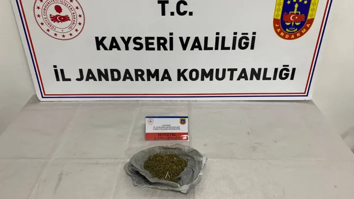 Kayseri'de jandarma ekiplerince yapılan çalışmalar neticesinde, üzerinde 75 gram bonzai taşıyan şahıs yakalandı.