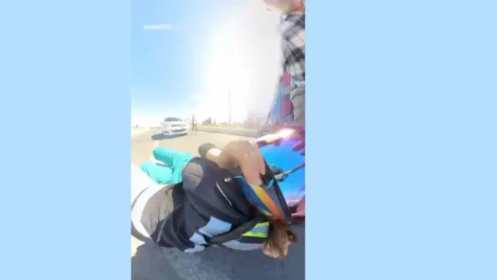 İlk bakışta karşılıklı yol verme tartışması gibi görünen olayın, araçta bulunan bir kadın ve bir erkeğin saldırısı sonrası büyüdüğü ortaya çıktı. Olay motosiklet sürücüsünün kask kamerasına saniye saniye kaydedildi.