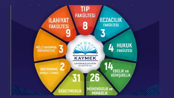 KAYMEK, mesleki eğitim, kurs ve kültürel sanat hizmetlerinin yanı sıra, Liselere Geçiş Sistemi (LGS) ve Kamu Personeli Seçme Sınavı (KPSS) gibi kritik sınavlar için sunduğu ücretsiz kurslarla da öğrencilere destek olmaya devam ediyor. 2025 LGS'de 308 öğrencinin hayallerindeki okullara yerleşmesine katkı sağlayan KAYMEK, YKS'de de 8 Tıp, 3 Eczacılık, 4 Hukuk, 14 Ebelik, 26 Mühendislik ve Mimarlık, 31 Öğretmenlik, 2 Gastronomi, 3 Milli Savunma Üniversitesi ve 9 İlahiyat bölümü yerleştirmesi gerçekleştirdi.