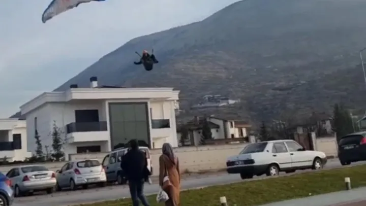 Paraşütçü inişe geçtiği sırada 20 metre yükseklikten böyle düştü