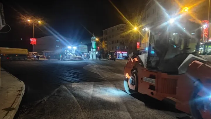 Pınarbaşı İlçe Merkezinde sıcak asfalt çalışmasında gece mesaisi