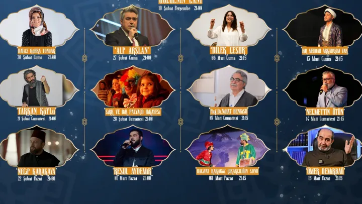 Ramazan ayı boyunca her cuma, cumartesi ve pazar günü düzenlenecek programlar kapsamında 20 Şubat'ta Hatice Kübra Tongar, 21 Şubat'ta Tarkan Köylü, 22 Şubat'ta Necip Karakaya, 27 Şubat'ta Alper Arslan, 28 Şubat'ta çocuklara yönelik 'Sirk ve Bir Palyaço Hikayesi', 1 Mart'ta Resul Aydemir, 6 Mart'ta Dilek Cesur, 7 Mart'ta Prof. Dr. Nihat Bengisu, 8 Mart'ta Hacivat Karagöz 'Cırcırböceğin Sonu', 13 Mart'ta 'Bir Meddah Arkadaşım Var', 14 Mart'ta Necmettin Nursaçan ve 15 Mart'ta Ömer Demirbağ Talaslılarla buluşacak. Söyleşilerden tasavvuf musikisine, geleneksel sahne sanatlarından çocuk programlarına kadar geniş bir içerikle hazırlanan etkinlikler, Ramazan akşamlarına anlam katacak.