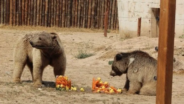 Ayılara uygulanan serinletme yöntemi hakkında bilgiler veren Hayvanat Bahçesi Müdürü İsmail Tamokur, “Ayılar havuz içerisinde oynamayı seven hayvanlar. Havuzlarında sürekli suyunu bulunduruyoruz. Havuzların içerisine girip serinliyorlar. Bunun yanı sıra içerisinde 10 çeşit meyvenin bulunduğu 4-5 kiloluk buz kalıpları oluşturuyoruz. Bu buz kalıpları ile hem serinliyorlar hem beslenmiş oluyorlar hem de oynayarak vakit geçiriyorlar. Ayılara, meybuzu öğlen ve ikindi olmak üzere en sıcak saatlerde veriyoruz. Hayvanların o sıcaklarda rahatlaması lazım” dedi.