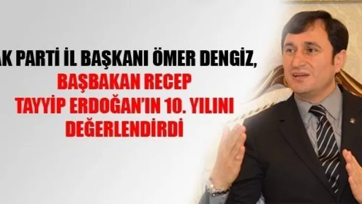 AK Parti İl Başkanı Ömer Dengiz, Başbakan Recep Tayip Erdoğan'ın Başbakan olarak seçilmesinin 10. yıl dönümünde yaptığı değerlendirmesinde, 'Türkiye dünyada kabul edilebilir bir güç oldu. Allah bunu AK Parti ve AK Parti'de görev yapan insanlara nasip etti' dedi.