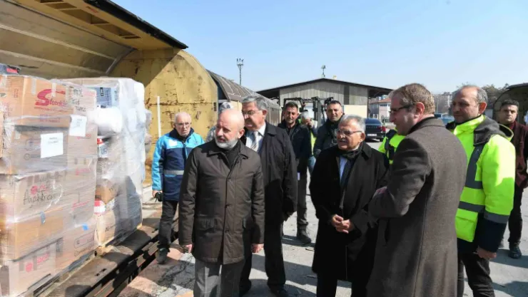 Kayseri Büyükşehir Belediye Başkanı Dr. Memduh Büyükkılıç, Kocasinan Belediye Başkanı Ahmet Çolakbayrakdar ile birlikte depremin yaralarını sarmak için Kayseri Tren Garı’nda çalışan ekipleri ve gönüllüleri ziyaret ederek, deprem bölgelerine gönderilen yardımlar hakkında bilgi aldı.