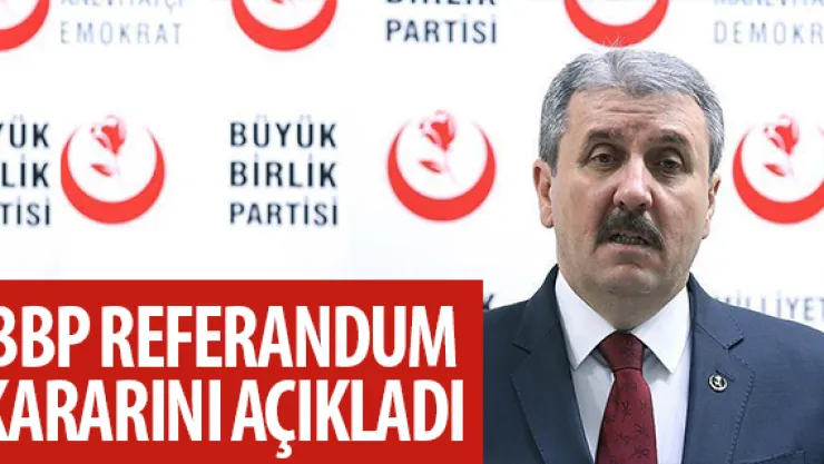 Destici, 16 Nisan'daki referandumda EVET diyeceklerini belirtti. BBP Lideri, "Partimiz hükümet değişikliği sisteminin dışında kalmama kararı aldı. Referandumda EVET diyeceğiz" şeklinde konuştu.
