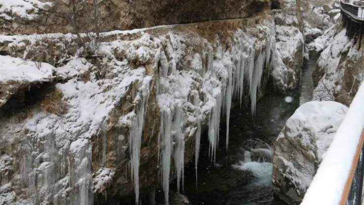 Binlerce yıllık tarihe sahip kanyonda kış manzarasıyla hayran bırakıyor