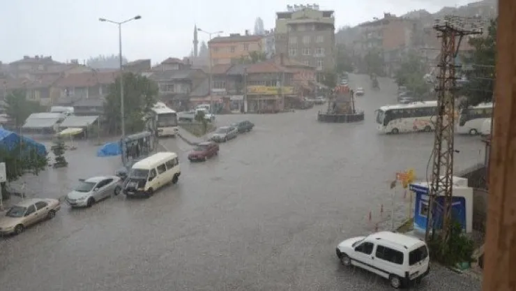 Yaklaşık 15 dakika süren yağış sonrasında bazı apartmanların çatıları beyaza bürünürken, ilçede esnaf ve vatandaşlar yağış nedeniyle büyük zorluk yaşadı.