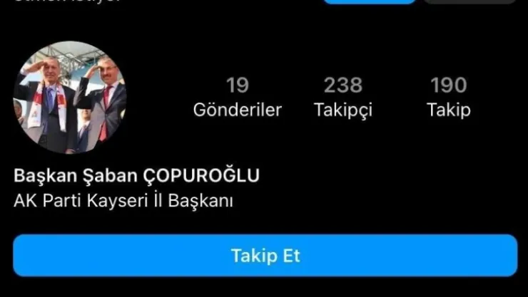 AK Parti Kayseri İl Başkanı Şaban Çopuroğlu, adına açılan sahte sosyal medya sayfalarının olduğunu ve itibar edilmemesi gerektiğini söyledi.