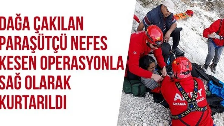 Dağa çakılan paraşütçü nefes kesen operasyonla sağ olarak kurtarıldı