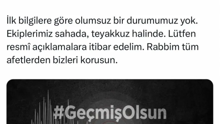 Kayseri Büyükşehir Belediye Başkanı Memduh Büyükkılıç tarafından Kayseri'de yaşanan 4,9 şiddetindeki deprem sonrası ilk belirlemelere göre olumsuz bir durum olmadığı bildirildi.