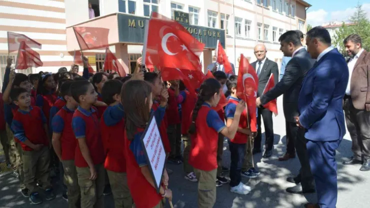 Öğrencilerle birlikte farkındalık oluşturmak için karşıdan karşıya geçen ilçe protokolü, daha sonra Muammer Kocatürk İlkokulunu ziyaret etti.