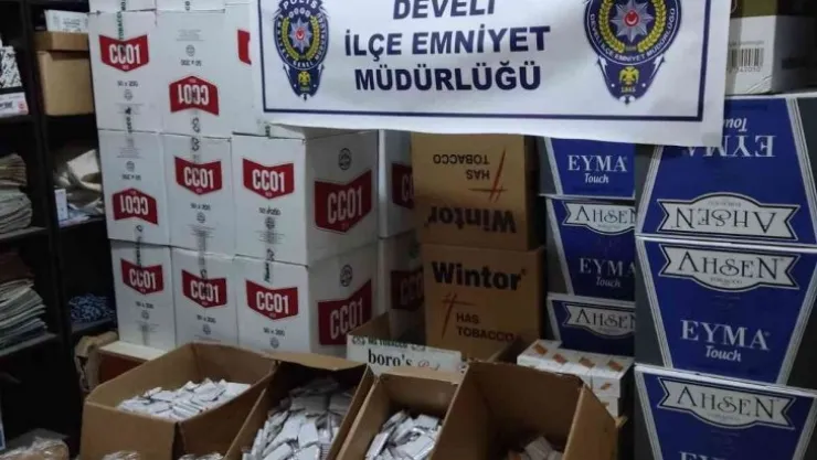 Kayseri'nin Develi ilçesinde polis ekipleri tarafından yapılan operasyonda çok sayıda bandrolsüz tütün ve makaron ele geçirildi.
