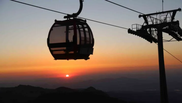 Hacılar Kapı’dan çekilen ve teleferiklerin de yer aldığı gün batımı fotoğrafları kartpostallık görüntüler oluşturdu.