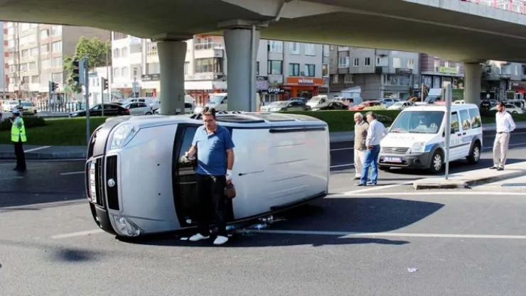 Kayseri Erkilet Bulvarı'nda sürücüsünün direksiyon hakimiyetini kaybettiği minibüs yan yatarken, kazada yaralanan olmadı.