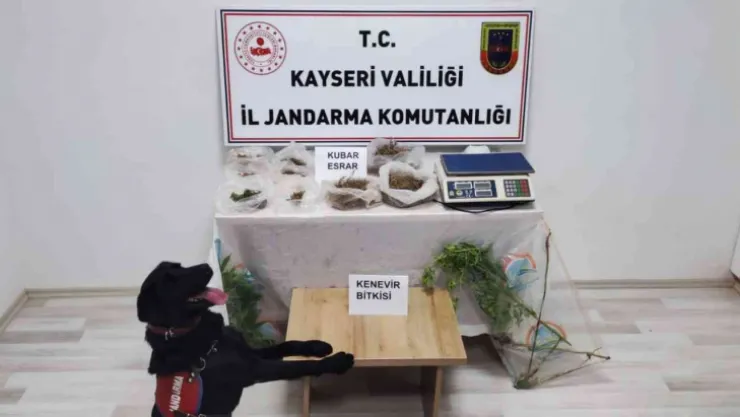 Kayseri'nin Sarıoğlan ilçesinde jandarma ekipleri tarafından yapılan çalışmalarda 500 gram uyuşturucu madde ile 30 kök kenevir bitkisi ele geçirilirken olayla ilgili 1 şüpheli gözaltına alındı.
