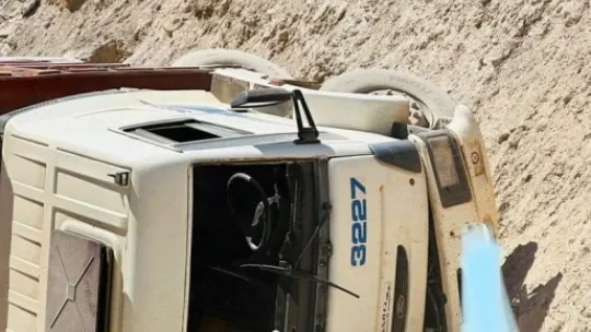 Freni patlayan maden yüklü kamyon devrildi: 1 yaralı