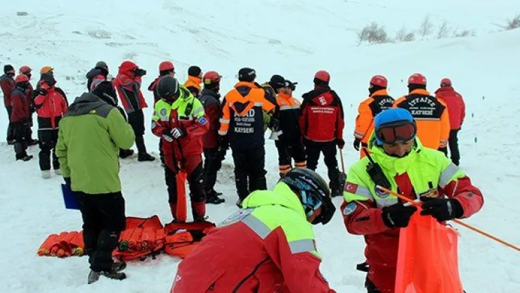 Kayseri'de bulunan arama kurtarma ekipleri tarafından Erciyes Dağı'nda 'çığda arama kurtarma' tatbikatı gerçekleştirildi.