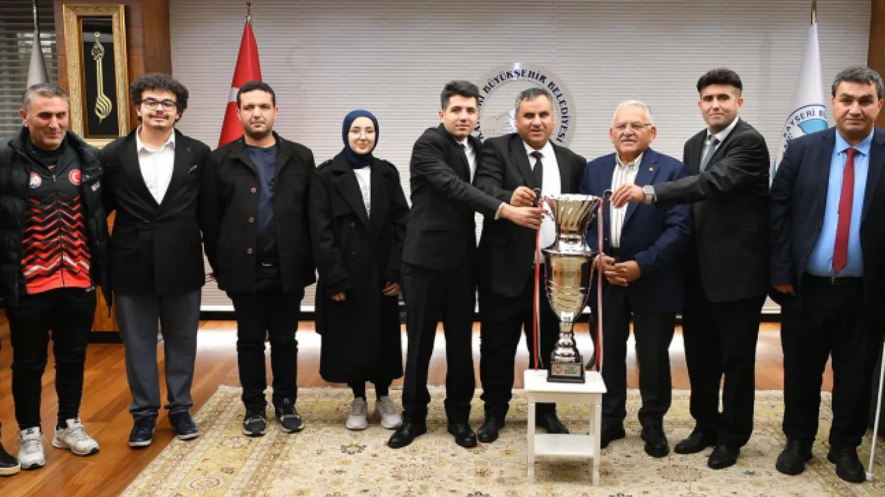 Kayseri Büyükşehir Belediye Başkanı Dr. Memduh Büyükkılıç, Sesi Görenler 1. Ligi'nde şampiyonluğa ulaşan Kayseri Görme Engelliler Spor Kulübü'nü makamında ağırladı. Başkan Büyükkılıç'a şampiyonluk kupası, takım tarafından sunuldu.
