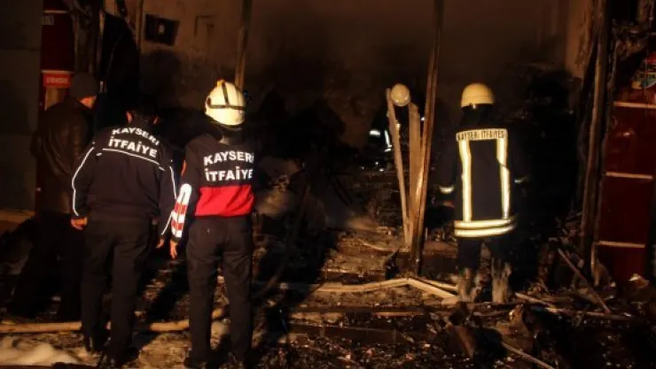 Kayseri'de cenazesi nedeniyle dükkanını kapatan vatandaşın iki katlı işyerinde çıkan yangında, işyeri tamamen yanarak kül oldu.