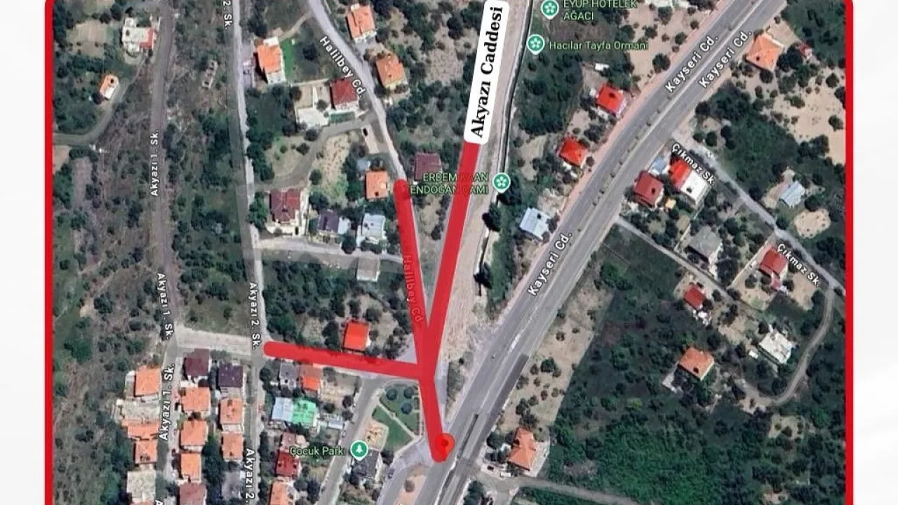 Hacılar Belediyesi tarafından Akyazı mahallesi, Kayseri Caddesi üzerinde yer alan bölgeye kavşak yapılacağını duyurdu. Gerekli çalışmaların başlayacağı belirtilirken, caddenin trafiğe kapalı olacağı aktarıldı.