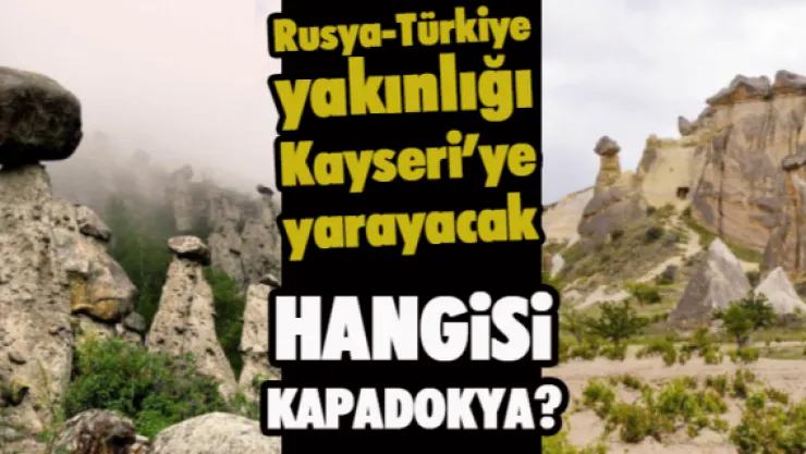 Rusya'nın Ankara Büyükelçiliği sosyal medya hesabından yayınladığı bir fotoğrafla dikkatleri Kapadokya'ya çekti. Rusya ile Türkiye'nin ortak bir yönünün ortaya çıkarıldığı fotoğrafta, bir tarafta Kapadokya bölgesinde yer alan peri bacalarına, diğer tarafta Rusya'ya ait Altay Cumhuriyeti'nin Akkurum bölgesinde peri bacalarına benzeyen kayalara yer verildi.