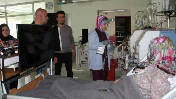 Sivas Gürün Devlet Hastanesi Diyaliz Ünitesinde tedavi gören hastalara daha konforlu hizmet vermek maksatıyla yataklarının karşısına televizyon kuruldu.
