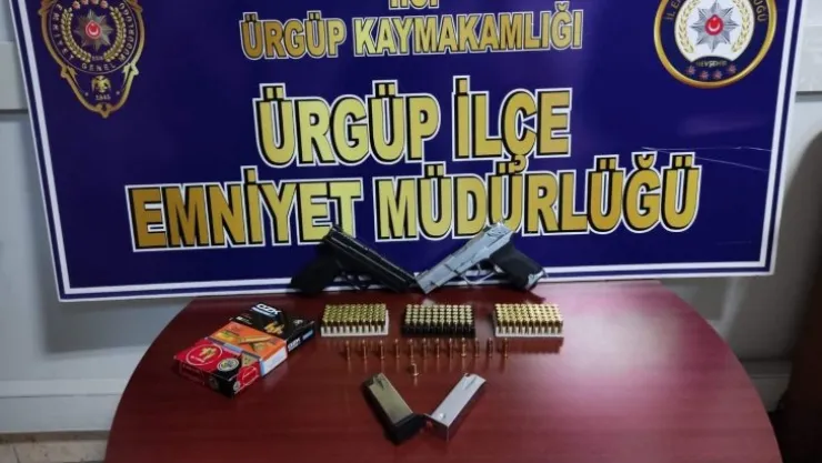 Edinilen bilgiye göre Ürgüp ilçesinde bir şahıs havaya rast gele ateş açtı. Çevredekilerin ihbarı üzerine çalışma başlatan polis ekipleri şahsı kısa sürede gözaltına aldı. Şahsın üzerinde ve aracında yapılan aramada, 1 adet bulundurma ruhsatlı tabanca ve tabancaya ait 15 adet 9x19 mm fişek, 1 adet ruhsatsız tabanca ile 8 adet 9x19mm fişek, 1 adet 9x19mm boş kovan ve 112 adet 9 mm, 50 adet ise 7.65 mm olmak üzere toplam da 2 adet tabanca ve 152 adet dolu fişek ele geçirildi.