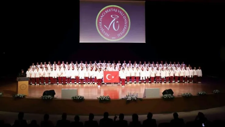 Nevşehir Hacı Bektaş Veli Üniversitesi (NEVÜ) Semra ve Vefa Küçük Sağlık Bilimleri Fakültesi 2021-2022 Eğitim-Öğretim Yılı Hemşirelik Bölümü 1. sınıf öğrencileri düzenlenen törenle üniformalarını giydi.