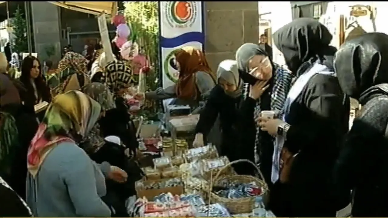 Gazze yararına açılan “Ümmet Çarşısı”nda birçok kadının el emeği göz nuru ürünleri sergilendi; ev yapımı gıdalar ve el işi ürünler vatandaşların ilgisiyle buluştu.