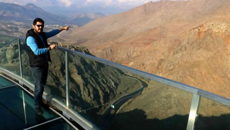 Sivas’ın Divriği ilçesinde bulunan cam seyir terası 243 metre yüksekliğiyle ziyaretçilerinin başını döndürüyor. 2021 yılında yapımının tamamlanmasının ardından yaklaşık 20 bin ziyaretçi ağırlayan cam seyir terası, manzarasıyla hayran bırakıyor. Terasa gelen ziyaretçiler, Mengücek Gazi tarafından kuşatıldıktan sonra 1097 yılında Süleyman Şah tarafından yeniden inşa edilen Anadolu’daki ilk Türk kalesi olma özelliğini taşıyan Divriği Kalesi ve karşısında bulunan Kesdoğan kalesini izleme imkanı buluyor. Karşılıklı iki kaleyi gözlemleme şansı yakalan ziyaretçiler ayrıca şehirdeki bin yıllık Türk izlerini de kuş bakışı gözleyebiliyor.