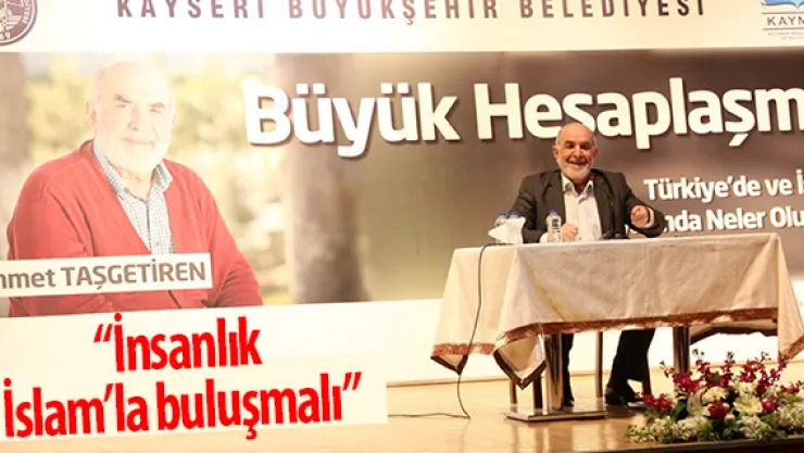 Büyükşehir Belediyesi bünyesindeki KAYMEK tarafından düzenlenen 'Büyük Hesaplaşma' adlı söyleşiye konuşmacı olarak katılan Gazeteci-Yazar Ahmet Taşgetiren, insanlığın İslam ile buluşması gerektiğini söyledi.