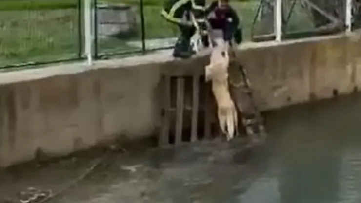 Olay yerine gelen itfaiye ekipleri uzun uğraş sonucu ırmağa düşen köpeği, düştüğü yerden kurtardı.
