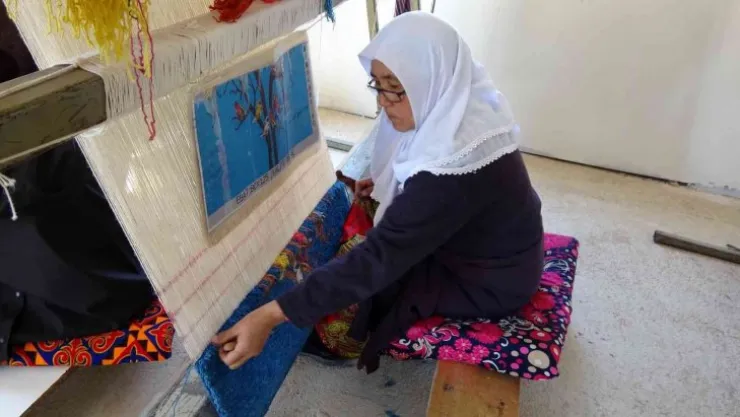 Hacer Işık da, “Burada halı dokuyor ve geleneksel bir sanatı yaşatmaya çalışıyoruz, ailemize katkıda bulunuyoruz. Elimizden geldiğince öğreniyor ve burada dokuyoruz. Ürünleri satarak aile bütçesine katkıda bulunuyoruz.” ifadelerine yer verdi.